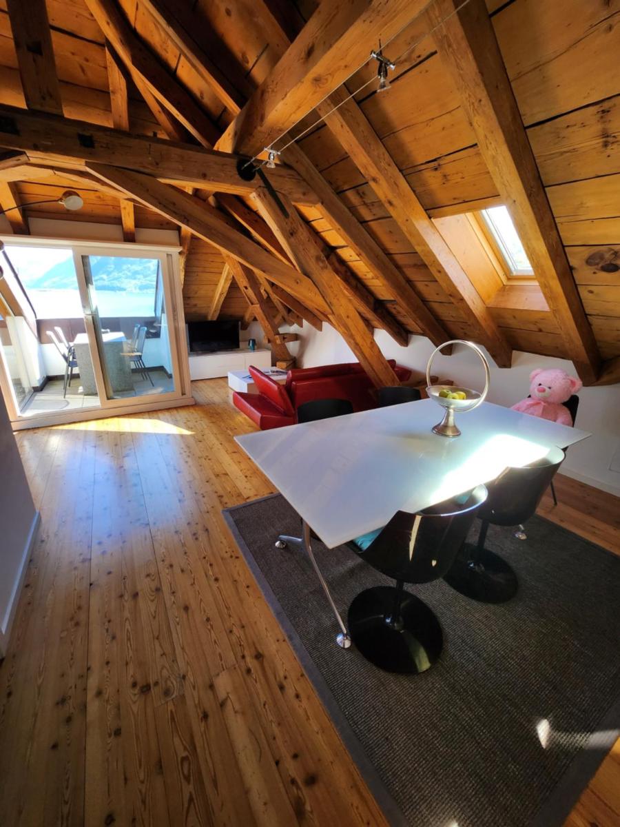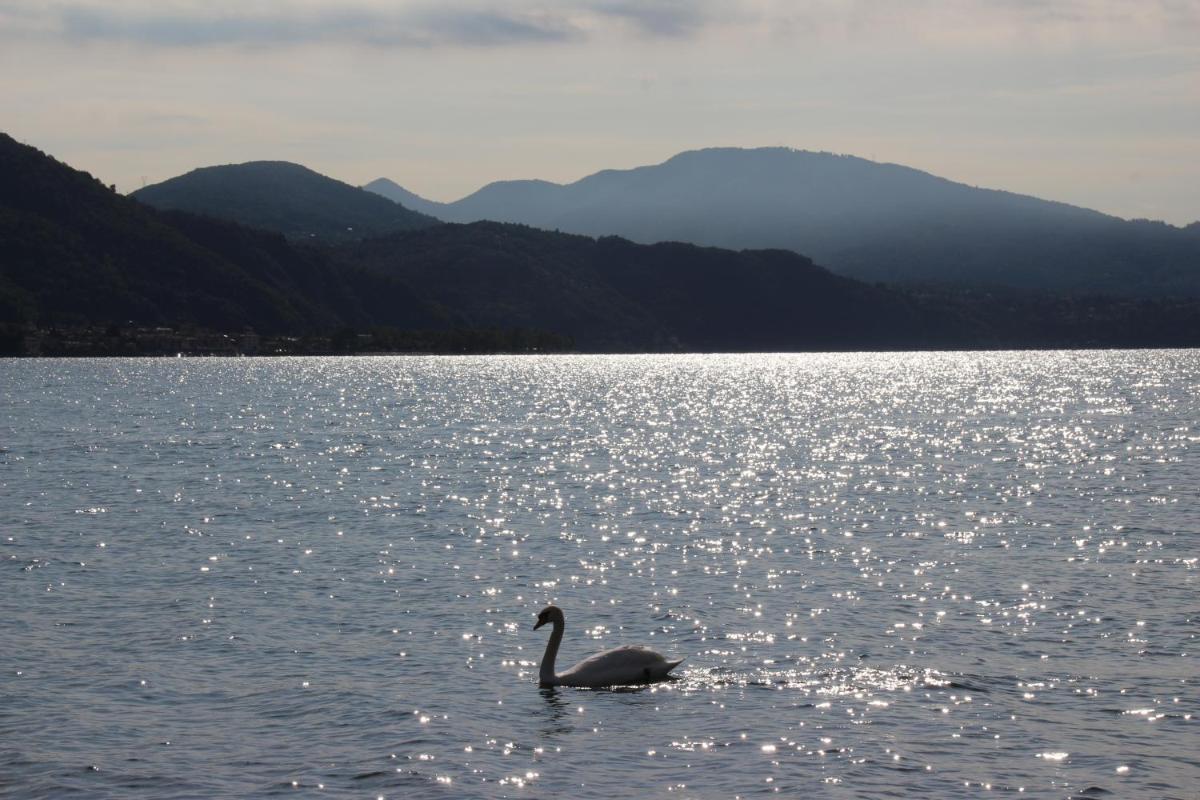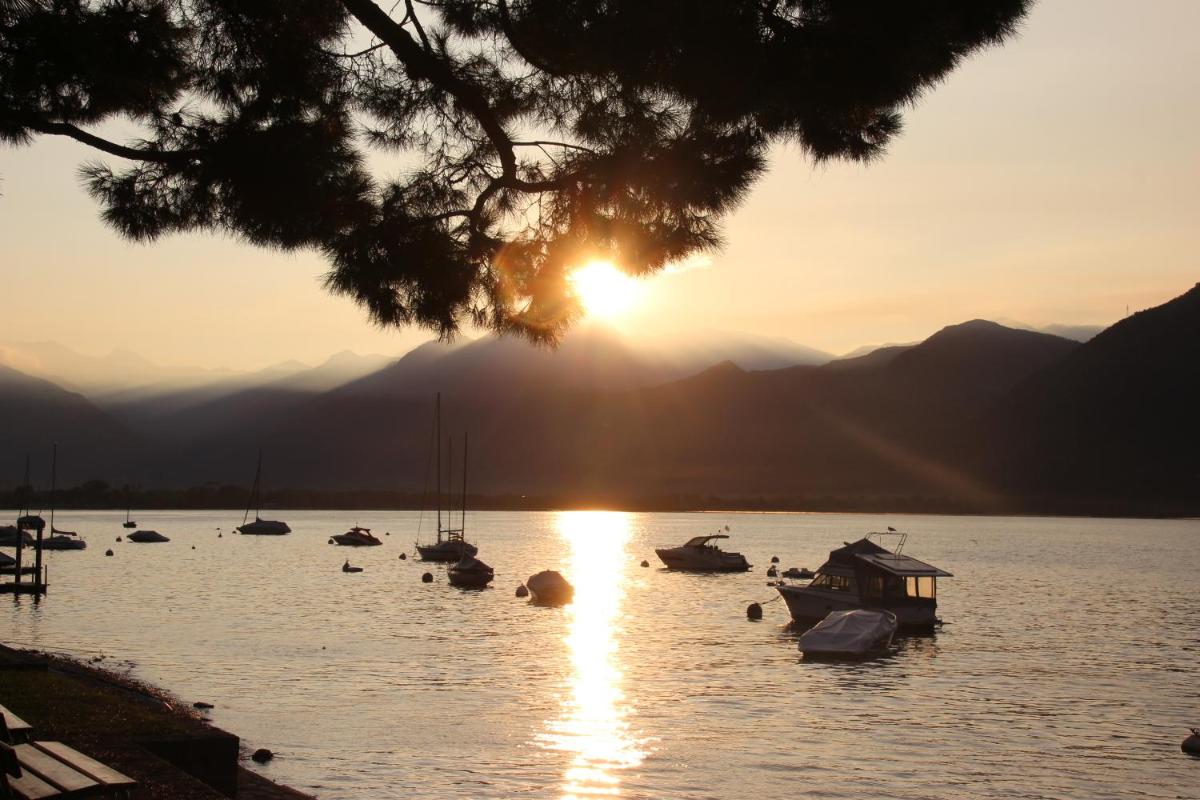 The gallery of Hotel Millennium Locarno highlights its lakeside position. Exterior images show the hotel facing Lake Maggiore, with mountains rising beyond the water. Room photographs emphasize natural light and simple, modern layouts.